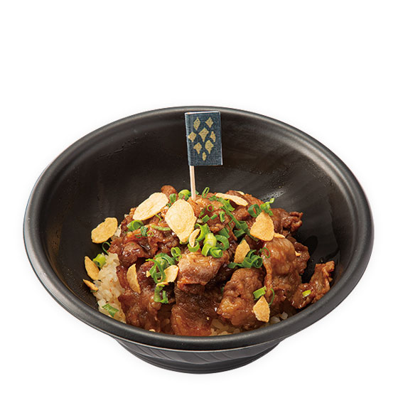 太陽の光で輝くガーリックライスの上に牛肉をのせた 料理。ニンニクは健康にいいからエスゲンさんもたっぷり 入れたかも。