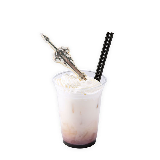 暗黒騎士の象徴である、大剣を突き刺したドリンク 【ザクロシロップ、ブルーシロップ、ピーチネクター、飲むヨーグルト、ホイップ、もなか】